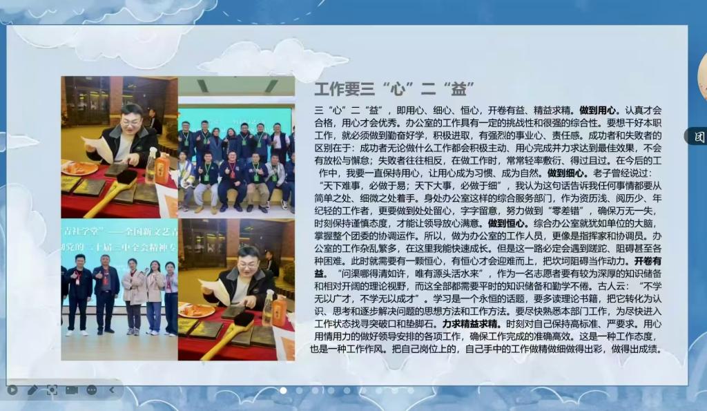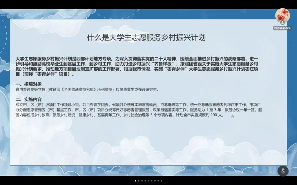 在分享会上,刘潇蔓结合自身求职经验,围绕当前就业渠道、职业选择、简历制作、面试技巧、求职安全等方面,指出公司官网与公众号是提前批招聘关键源鼓励同学们尽早确定目标,积极付诸行动。刘春东通过招募对象、实施内容、政策支持和资金保障四方面详细介绍了西部计划的岗位设置以及老员工志愿服务乡村振兴计划枣庄项目枣青乡伴还提出在日常工作中要做到用心、细心、恒心,做到开卷有益、精益求精。最后同学们踊跃提问学姐学长们进行了详细的解答,并给予了同学们诚恳的建议。