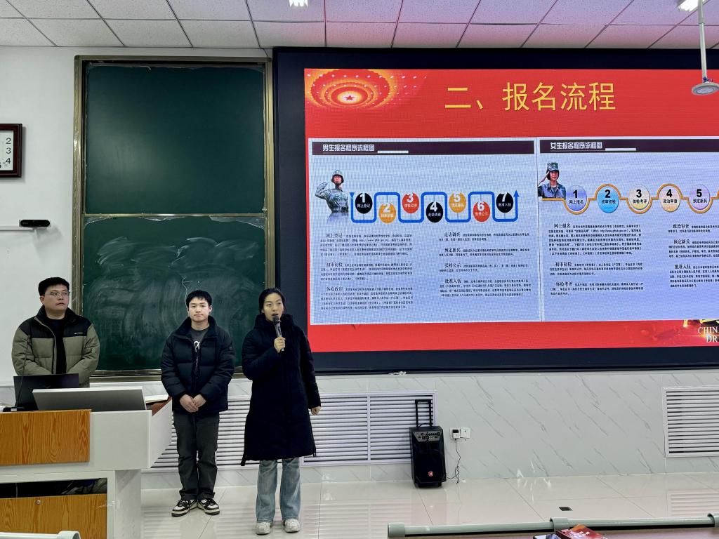 此次宣讲中,退役复学员工代表邵常振通过老员工入伍的征集条件、应征入伍报名流程、国家现行的报名指南优惠政策以及发展路径五方面。结合自身的入伍经历,介绍了当前的国家安全形势,重点介绍国家对于老员工入伍在学业支持方面的政策,如保留学籍、学费补偿代偿等强调了征兵入伍对于国家的重要意义,鼓励同学们积极投身国防事业随后,退役复学员工代表邢萍萍分享了自己的军旅生涯,讲述了在军营中度过的难忘岁月,以及与战友们并肩作战的感人故事。在互动环节,同学们踊跃提问,退役复学员工代表进行了详细解答。