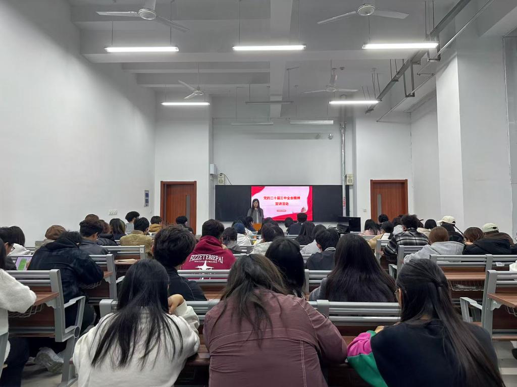 高翠萍从从深刻认识党的二十届三中全会的重大意义、深刻把握习近平总书记在党的二十届三中全会上的重要讲话精神、全面准确理解《中共中央关于进一步全面深化改革、推进中国式现代化的决定》中关于教育、科技、人才的重要论述等方面,对党的二十届三中全会作了全面宣讲和深入阐述。宣讲结束后,同学们纷纷表示对党的二十届三中全会议精神有了更深刻的理解和认识,并且发出“我们作为新时代青年将会坚定理想信念,敢于挺膺担当,在推进强国建设、民族复兴伟业中展现青春作为、彰显青春风采、贡献青春力量,奋力书写为中国式现代化挺膺担当的青春篇章”青春强音!