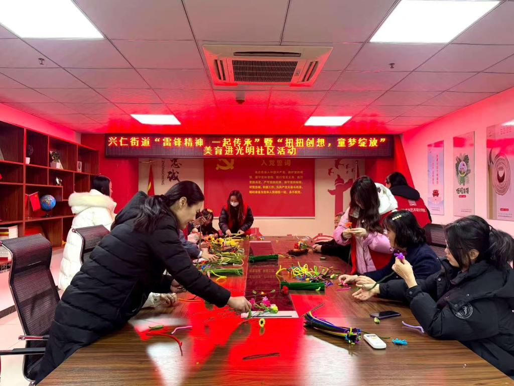 活动共有50位居民参加。在光明社区,志愿者们为居民们讲解非遗手工扭扭花的制作技巧,包括花瓣的塑形、花束的整体组合等。居民们充分发挥想象力与创造力,一扭一捏、一卷一折,将扭扭棒变成了玫瑰花、向日葵,居民深刻感受到了非遗文化的独特魅力。制作过程中,志愿者们展现了雷锋精神所蕴含的无私奉献、助人为乐的志愿服务精神。在天安社区,志愿者们准备了空白扇子、颜料和画笔,并重点为居民们讲解了彩绘扇面的步骤技巧和注意事项。随后,居民们拿起画笔,画出了自己心中的雷锋画像,在绘画中感悟雷锋精神。本次活动共制作扭扭棒40件、彩绘扇面20件。