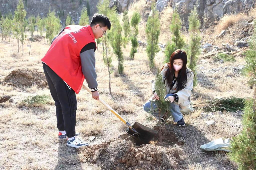 活动现场,同学们分工合作,有序领取树苗,前往指定区域开始植树。在专业人员的指导下,同学们挥锹铲土、扶苗正枝、培土围堰、提桶浇灌,以实际行动践行着“绿水青山就是金山银山”的理念。同学们相互协作,各司其职,活动现场呈现出热火朝天的劳动景象,充分发扬了不怕苦不怕累的优良传统和协作精神。在同学们的共同努力下,树苗迎风挺立,形成了一道靓丽的风景线。同学们深刻地体会到了大自然的生命力,也感受到了保护环境、关爱地球的责任感。活动结束后,同学们纷纷表示,植树造林是功在当代、利在千秋的事业,要以身作则,带头践行绿色发展理念,为生态注入青春活力。