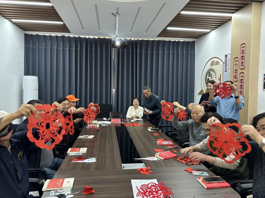 宣讲团以“华龙一号”核电技术为切入点,围绕“精神传承”这一核心主线,巧妙搭建起“历史—现在—未来”的对话桥梁。宣讲团结合详实的图文资料与珍贵视频,讲述了在极端艰苦的条件下隐姓埋名、为国铸剑的感人事迹。随后的非遗剪纸体验活动,社区居民们热情高涨,纷纷手持剪刀与红纸,在志愿宣讲团成员的指导下,充分发挥想象力与创造力,将对祖国的无限热爱、对英雄的崇高崇敬融入指尖的每一次裁剪之中。通过动手实践,社区居民们不仅体验了中华优秀传统文化的独特魅力,更直观感受到了“两弹一星”精神与中华优秀传统文化相结合所焕发出的新活力,实现了精神传承与文化体验的深度融合。