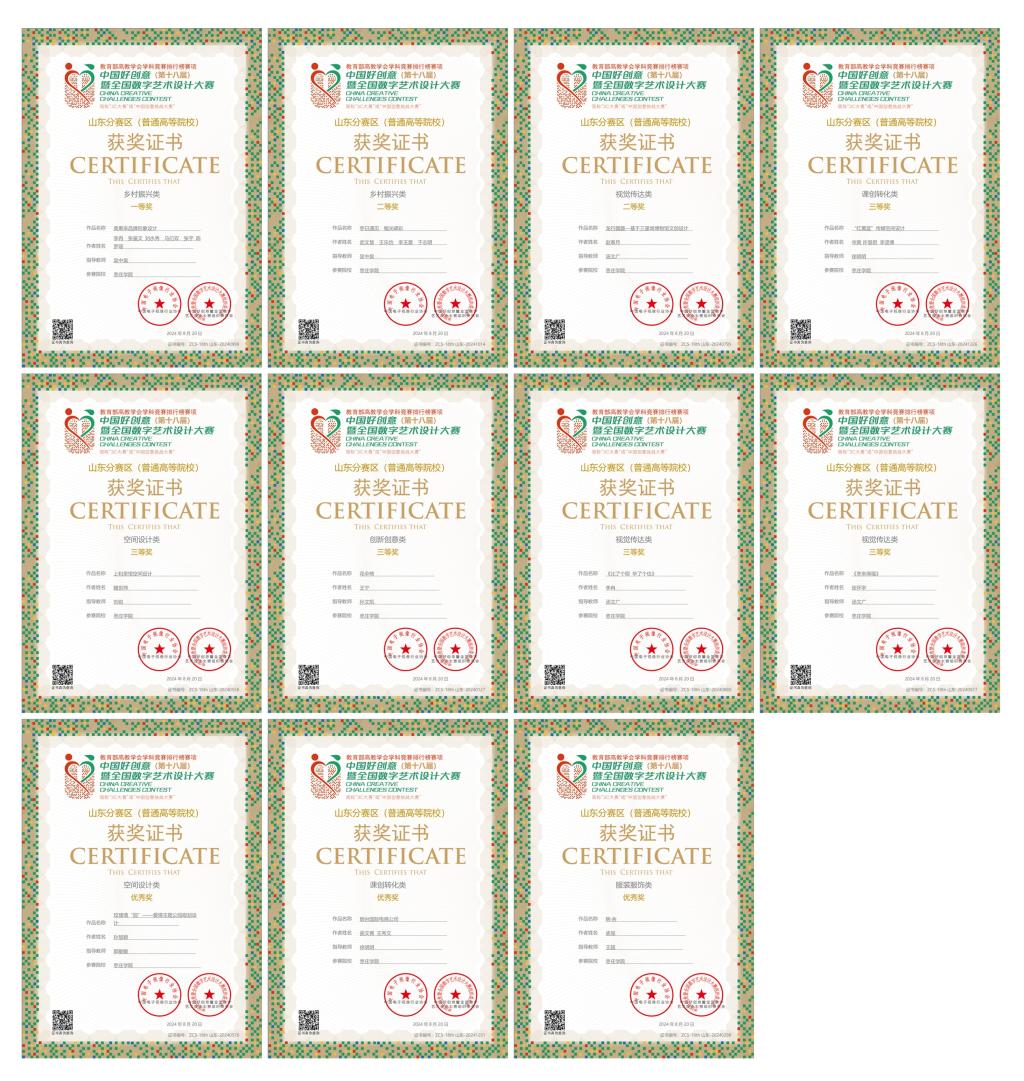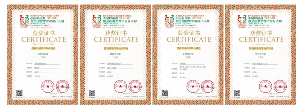 近日,第18届中国好创意暨全国数字艺术设计大赛评选结果揭晓,公司悟空体育学子荣获国赛二等奖1项、三等奖3项;省赛一等奖1项、二等奖2项、三等奖5项、优秀奖3项;汤文广老师荣获国赛优秀指导教师称号,徐明明、吴中昊老师荣获省赛优秀指导教师称号。