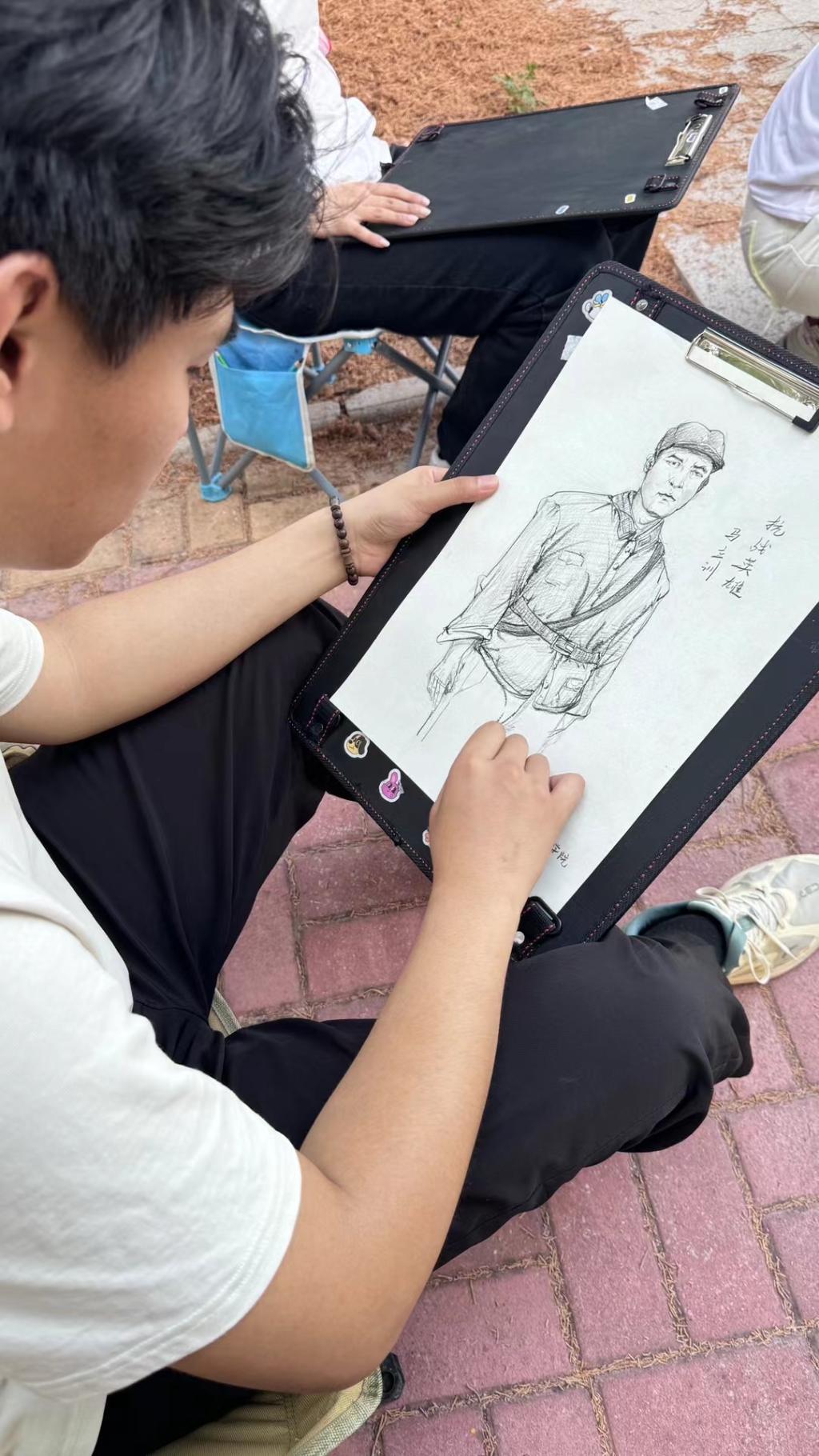本次活动包括缅怀先烈、重温入党誓词、聆听革命故事、手绘英模、碑文描摹五部分。在烈士陵园纪念碑前,全体党员肃立、默哀、追思,表达对英雄先烈的深切缅怀和崇高敬意。随后,全体党员面向党旗,高举右拳重温了入党誓词,在铿锵有力的誓词中坚定理想信念、砥砺初心使命。在怀烈亭中,烈士陵园王主任讲述了“青年战斗英雄”安保全的故事,党员们深入了解到他的英雄事迹,并清扫了亭中的落叶、杂草、树枝等。在手绘英模环节,美术学专业党员志愿者发挥专业优势,用手中的画笔还原烈士的样貌,再现安保全、马立训等英雄故事,传承红色基因。书法学专业党员志愿者开展碑文修复志愿服务活动,擦去纪念碑上的灰尘,用毛笔蘸金箔漆,一笔一画为枣庄革命烈士陵园碑文进行描金,纪念碑上逐渐暗淡的文字再次熠熠生辉。本次活动共绘制14件作品并赠与枣庄革命烈士陵园,完成三处碑文修复。
