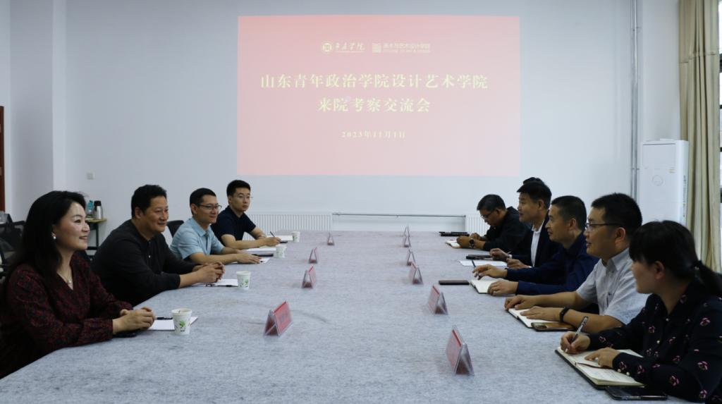 2023年11月1日下午,山东青年政治公司设计艺术公司党委书记赵健、经理张博等一行4人来访公司,院党总支书记王剑、副经理赵平等公司班子成员出席接待交流活动。