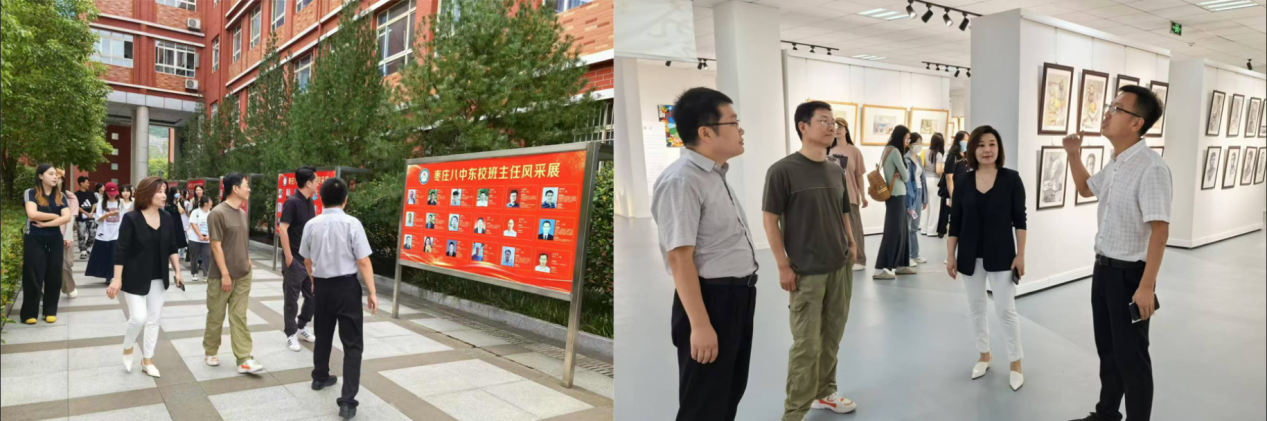 师生首先参观了枣庄八中东校名师风采展、公司美术馆,通过参观增强了员工的职业认同感,使员工感受到了榜样的力量,同时也感受到了枣庄八中东校美育教学的丰硕成果。