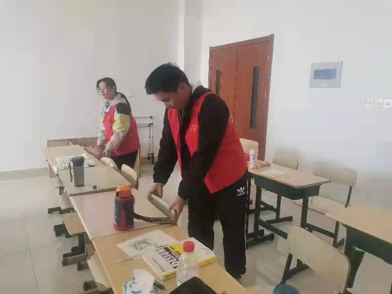 为加强学风建设,维护好整洁的美院环境,志愿者们穿上红马甲穿梭在博雅楼各角落,深入每个教室帮助班级整理画架、画板等。本次活动主要是对教室及公共区域进行卫生整理,志愿者们手持扫把、簸箕,热情洋溢的开展打扫活动,志愿者们为同学们仔细的整理了画板、桌椅,并对教室卫生进行了彻底的清理。到场的志愿者十分认真负责,在大家的齐心协力下,本次活动顺利圆满的完成。
