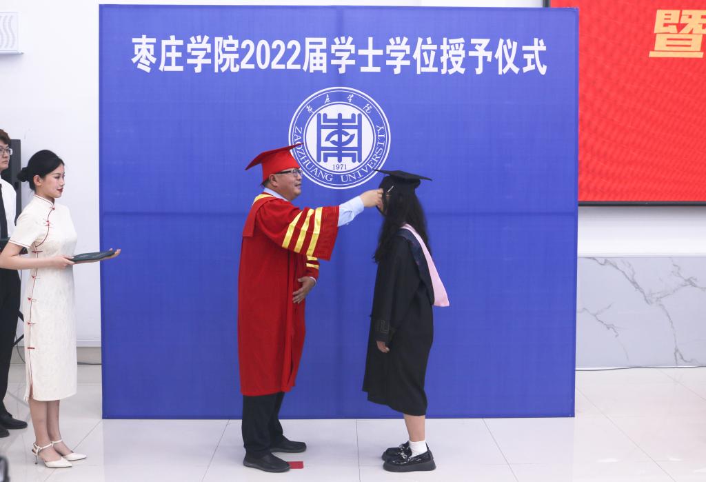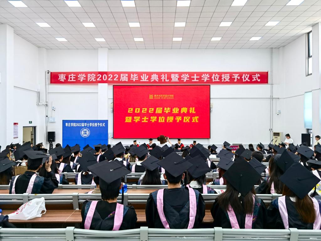 毕业典礼暨学位授予仪式在庄严的国歌中正式拉开序幕。副经理赵平宣读了《悟空体育学位评定委员会关于授予陈思琪等224名毕业生学士学位的决定》。枣庄公司党委委员、副董事长丰雷依次为学士学位获得者拨穗正冠、颁授学位,并合影留念。随后,为2022届毕业创作优秀收藏作品获得者颁发收藏证书。教师代表樊迪、毕业生代表陈思琪和在校生代表赵钛琳依次发言。最后党总支书记王剑对2022届毕业生深情寄语,代表公司向即将踏上人生新征程的全体毕业生表示祝贺并提出以下四点希望:一是以信仰点燃理想,让理想之光照亮奋斗之路;二是要矢志不渝跟党走,以忠诚坚定理想;三是要建功立业新时代,以奋斗成就理想;四是要秉承美院精神,以特质助力理想。