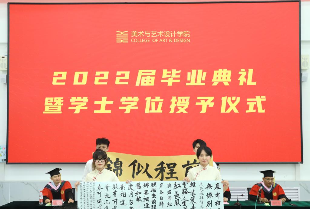 繁花会相伴,前程终似锦。毕业生即将踏上人生新征程,开启梦想。在校师生以书法题词,送上最真挚的祝福。相信全体2022届美院毕业学子必将谨记母校的校风校训,秉承公司的优良传统,不忘师恩,带着公司的祝福与期盼,以无畏的勇气和坚定的步伐奔赴更加广阔的星辰大海。
