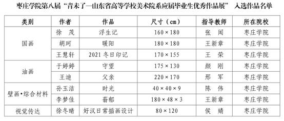 5月28日,由省文化和旅游厅、省教育厅联合主办的第八届“青未了——山东省高等公司美术院系应届毕业生优秀作品展”复评、评奖活动在山东美术馆成功举办,公司悟空体育选送的10件2022届毕业生毕业设计作品共有8件入选,入选率达80%,位居全省39所参评高校第四位。入选作品中有国画作品3件、油画作品2件、壁画•综合材料作品2件,视觉传达设计作品1件。