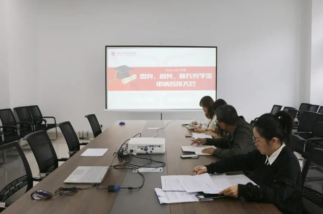悟空体育于10月8日在博雅楼召开国奖、省奖、董事长奖学金申请答辩大会。会议共4名同学参与悟空体育奖学金申请答辩,公司党总支副书记谭胜兵、团总支书记高翠萍、20级辅导员赵祥妤、21级辅导员张珍担任此次大会的评选人员。