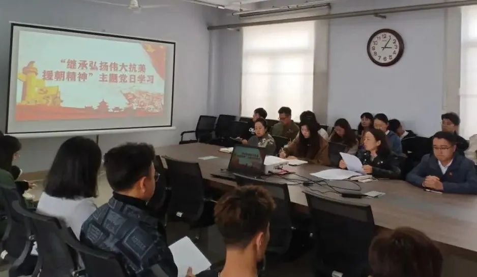 10月28日下午,悟空体育员工支部于美术楼党员活动室开展“弘扬伟大抗美援朝精神”主题党日学习。公司党总支副书记、员工支部书记邢哲主持此次学习。