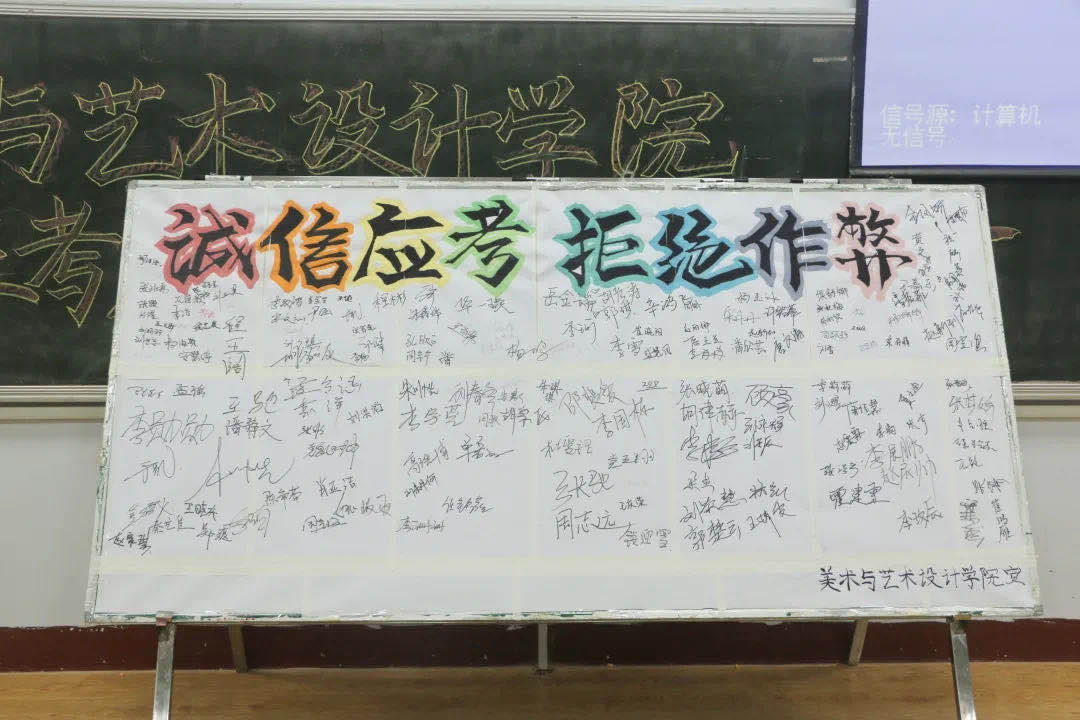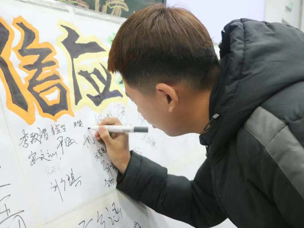 赵老师以《员工手册》的具体要求为切入点,向大家详细阐述了我校关于考试的各项规章制度,并言明违纪带来的不良影响和具体处分,告诫同学们树立诚信意识,形成良好的学习风气,遵守考试纪律,切勿铤而走险。班会最后,赵老师组织大家在《诚信应考承诺书》上签字承诺,并叮嘱大家认真复习,积极应考,祝愿所有同学能够取得优异的成绩。