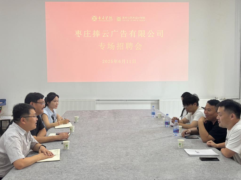 为持续推进2025届毕业生就业工作,推动人才培养与行业需求精准适配,6月11日,公司邀请枣庄市捧云广告有限公司开展专场招聘宣讲会,该公司设计总监罗飞等到场宣讲,公司党政领导、辅导员及2025届毕业生参加。