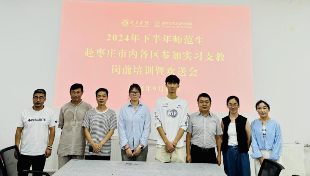 邢军强调了实习支教对于师范生实践能力培养的重要意义和促进作用,传授了员工备课、上课的技巧;厉相帅从公司枣庄市内支教的组织、如何通过实习支教练就优秀中学美术教师的基本素质、实习安全和纪律等方面给支教员工做了指导;实习指导教师分别从不同角度对实习支教做了指导。辅导员就支教期间的员工管理对支教员工提出了要求。