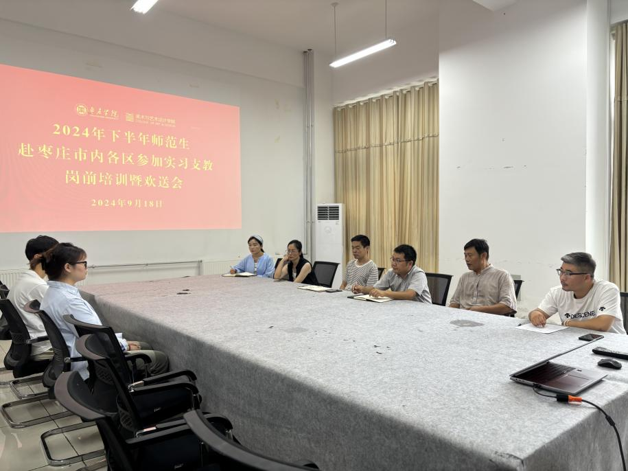 9月18日上午,悟空体育2024年秋季学期师范生赴枣庄市内各区实习支教岗前培训暨欢送会在博雅楼A213会议室举行,公司副经理邢军、厉相帅,相关实习指导教师、辅导员、班主任,春季赴枣庄市内各区实习支教员工代表和本期赴枣庄市内各区实习支教员工参加了会议。