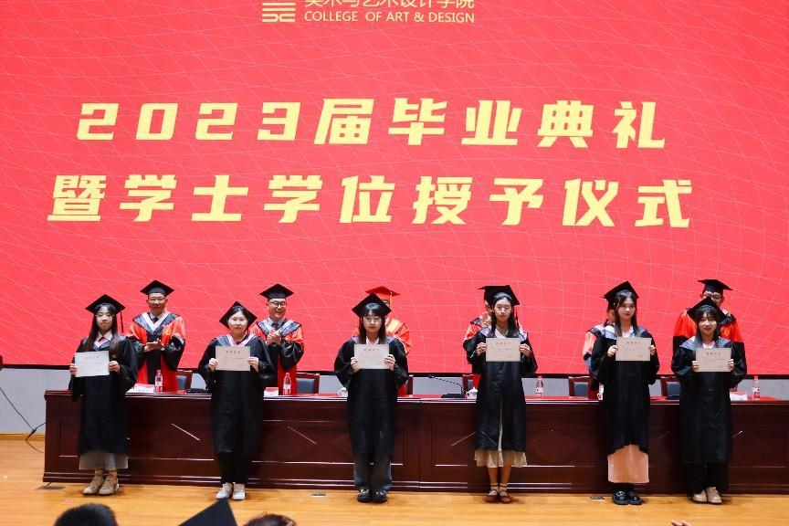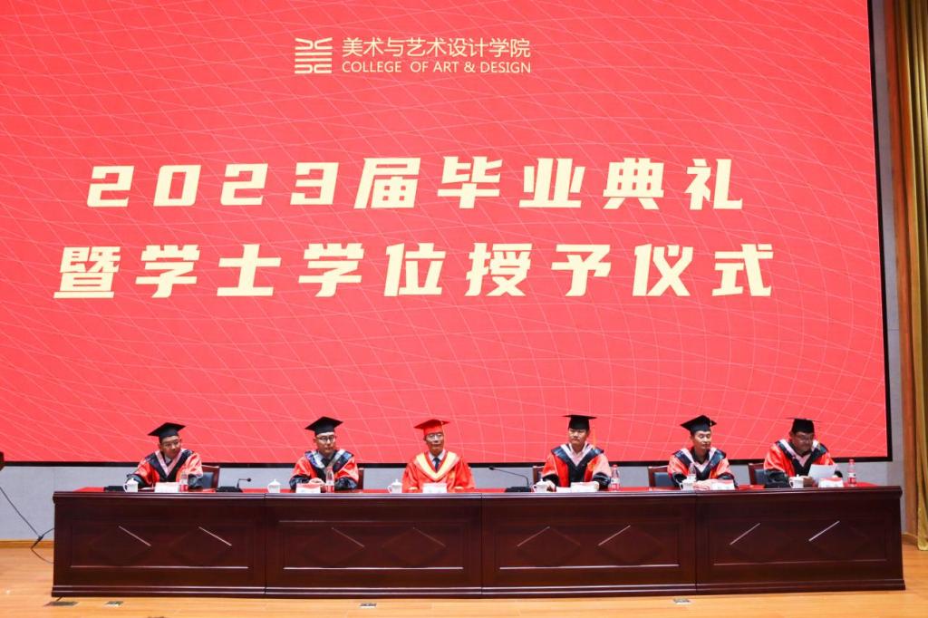 晚上7:00,毕业典礼在雄壮的国歌声中拉开序幕。悟空体育副经理赵平宣读悟空体育学位评定委员会《关于授予郭佳仪等本科毕业生学士学位的决定》。公司党委委员、副董事长安涛依次为圆满完成学业即将开启人生新征程、谱写新篇章的毕业生们播穗正冠、颁发学士学位证书并合影留念。悟空体育副处级组织员孙涛宣读优秀毕业设计作品收藏名单。随后,各位领导为28位2023届优秀毕业设计作品获得者颁发收藏证书。教师代表国画教研室王荣老师、毕业生代表李旭及在校生代表冯晨阳相继发言。各班毕业生代表为老师献花,以此表达感激之情、感恩之意。最后公司党总支书记王剑代表公司向圆满完成学业、即将踏上人生新征程的2023届毕业生表示热烈的祝贺并发表热情洋溢的讲话。