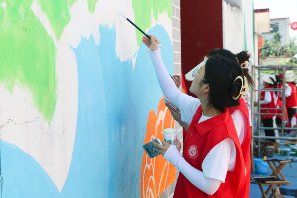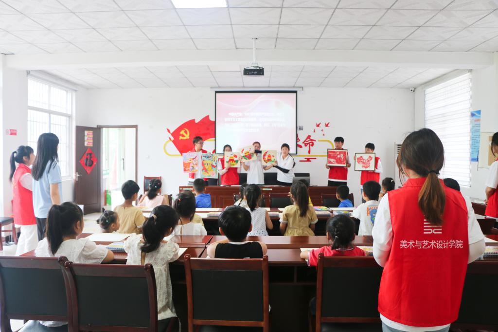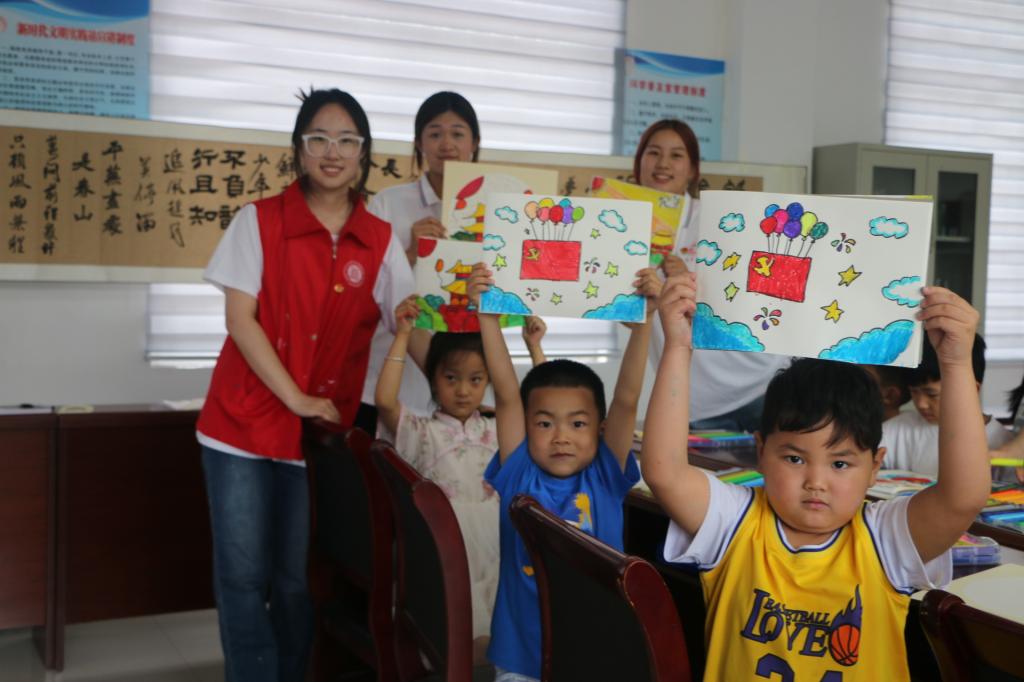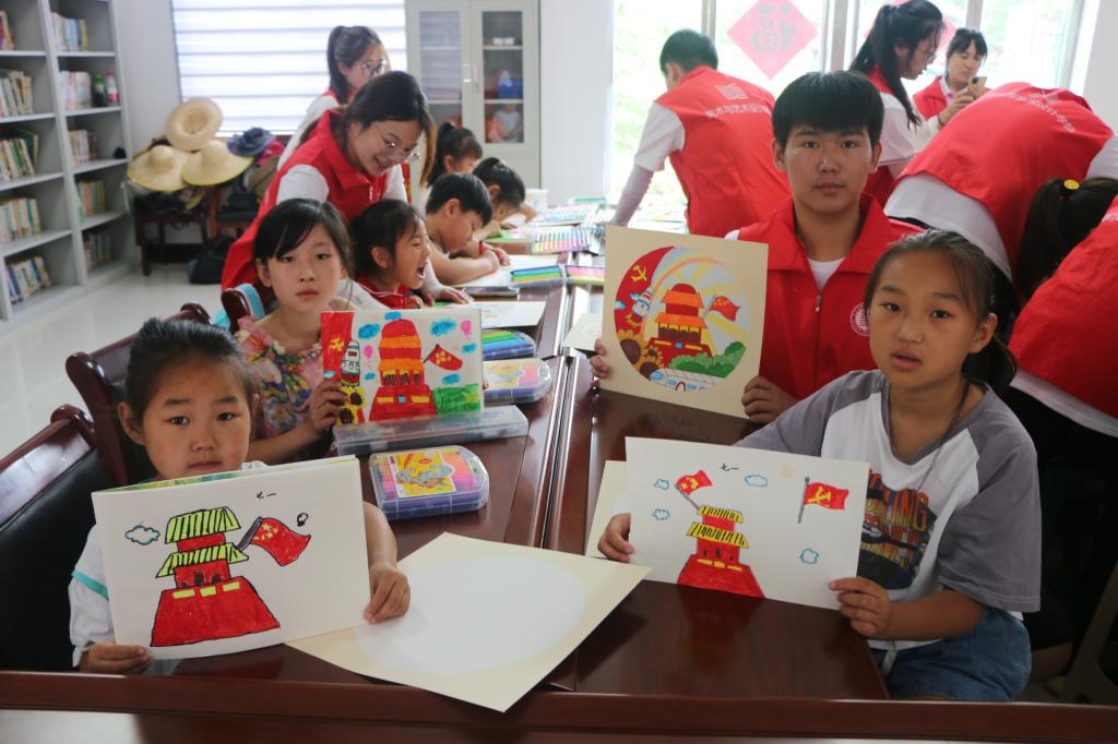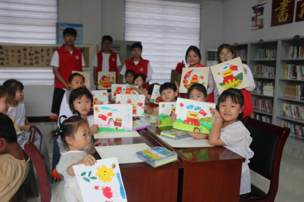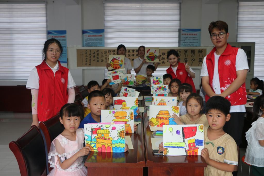 为深入学习宣传贯彻习近平新时代中国特色社会主义思想,积极引导员工对人民同呼吸共命运的情感,志愿者们充分发挥美术专业特色,开展了一系列主题丰富、形式新颖、成效显著的社会实践活动。“青绘˙艺行”志愿服务队围绕郭洼村沿路主干道墙面,绘制了“乡村振兴战略”“环境保护”“农耕文化”等主题墙绘30多面600余平,助力美丽乡村建设提升农村人居环境,成为郭洼村一道靓丽的风景线。“精神传薪火,青春聚征程”志愿服务队前往金榜幼教郭洼幼儿园开展了留守儿童义务支教活动,内容涵盖少儿美术、创意小手工、书法书写等公益课堂,带着孩子们以“我最爱的祖国”为主题创作了50件书画手工作品,志愿者还给孩子们带去了书包、水彩笔等文具,支教活动受到留守儿童热烈欢迎。活动之余,党员志愿者们还开展了走访老党员活动,为老党员送去慰问品,聆听老党员讲述革命故事,感悟革命年代的过往。