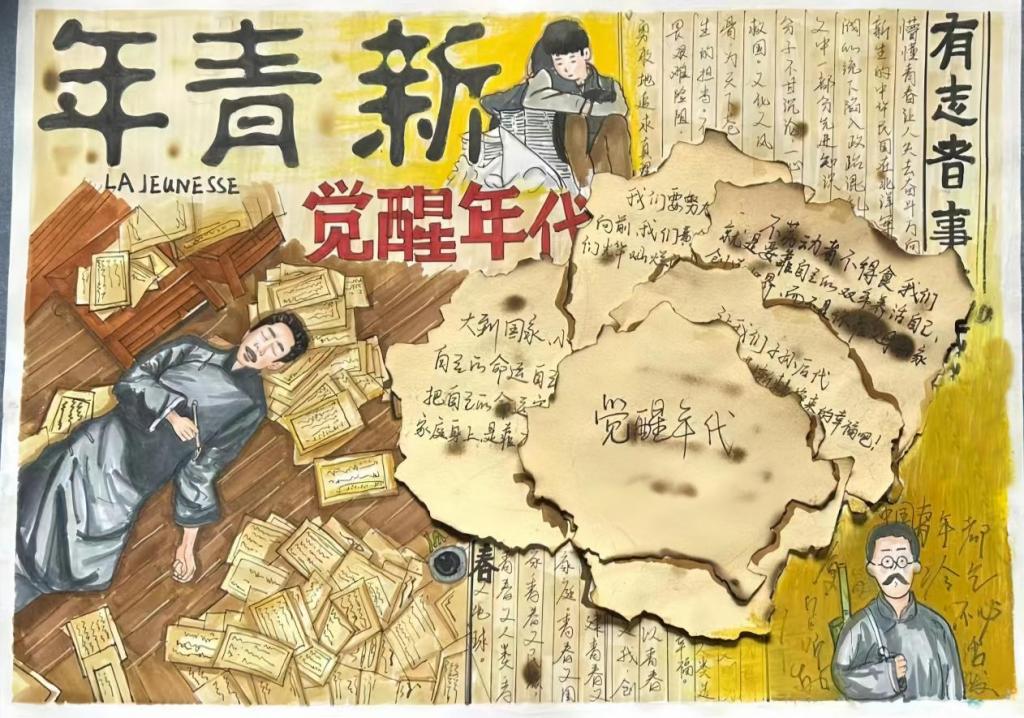 各团支部先后开展了“学团史、争先锋”主题团日、“五四精神”主题书画创作、“五四精神”宣讲活动。“学团史、争先锋”主题团日活动包括主题团课、知识问答、分享交流和重温入团誓词四个方面,通过理论学习、演讲、心得分享,观看影片等“沉浸式”仪式教育,引导广大团员青年继承五四精神,坚定理想信念。青年学子以笔为寄,以画寄情,围绕“五四精神”为主题创作书法、插画、海报等艺术作品50余幅。围绕“弘扬五四精神,汲取奋进力量”为主题开展宣讲活动,从五四运动的相关介绍、五四精神的时代内涵等方面进行宣讲,取得到了良好的效果。