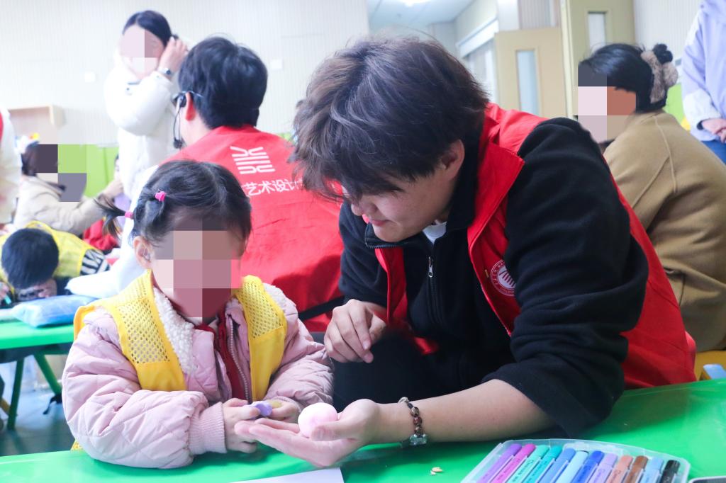 活动前期,邀请康复中心专家为志愿者开展相关知识培训,包括残疾儿童的行为特点、沟通技巧、心理特征以及如何应对突发情况等内容,明确了志愿服务中的要点和注意事项。活动中,志愿者们用“名字接龙”的互动小游戏完成了破冰并与孩子们建立信任。志愿者发挥美术特长,通过剪纸作品、绘画作品为听障儿童、独症儿童讲述雷锋故事,并以雷锋人物为出发点,以色彩认知、色彩涂鸦、作品分享等美育活动帮助孤独症儿童和听障儿童表达内心世界,并对他们的表现给予了大大的鼓励,帮助他们树立自信。最后志愿者们制作了卡通加油卡送给了孩子们,活动在开心快乐中顺利结束,孩子们与志愿者依依不舍,期待着下次见面。