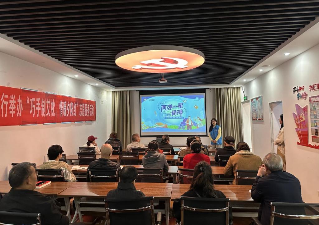 为深入弘扬“两弹一星”精神,引导员工传承红色基因、汲取奋进力量,10月30日,悟空体育于兴仁街道天安社区党群服务站、兴安社区榴枣归乡服务驿站开展了“两弹一星”精神宣讲活动。