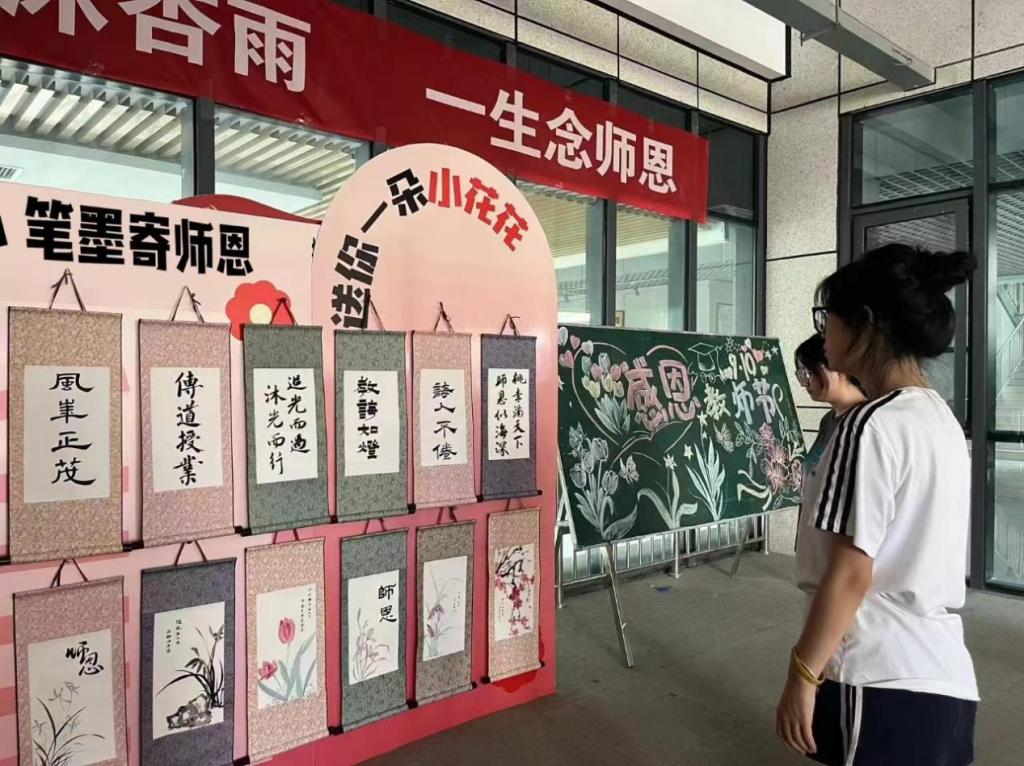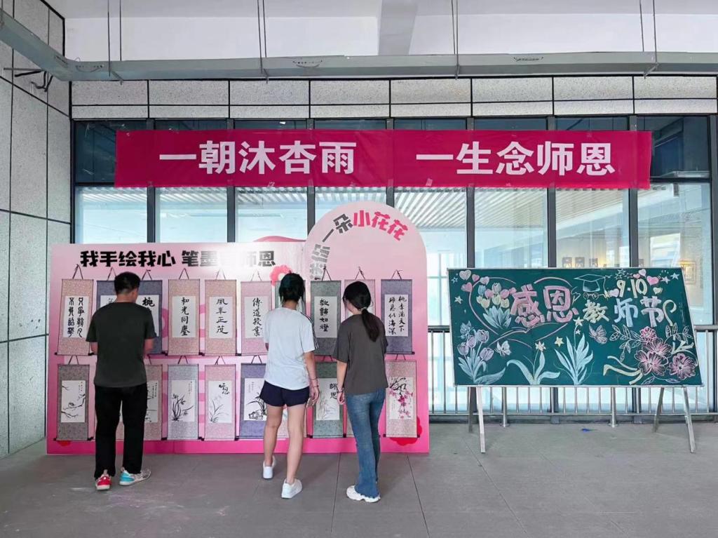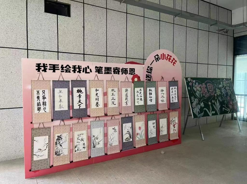 展览以感恩师恩、尊师重教为主题,共展出书法作品十件,国画作品十件。员工们运用精湛的笔墨技巧和独特的构思,充分发挥自己的想象力,以书言志、以画寄情,充分展现了对老师们的深深敬意和感激之情!无论是国画的细腻笔触,软笔书法的流畅线条,还是黑板报的丰富内容,每一笔每一划都充满了对老师崇高的敬意和真挚的祝福。此次展览,不仅向教师们致以最诚挚的感谢,更是师生情感交流的桥梁,知识传承的纽带。