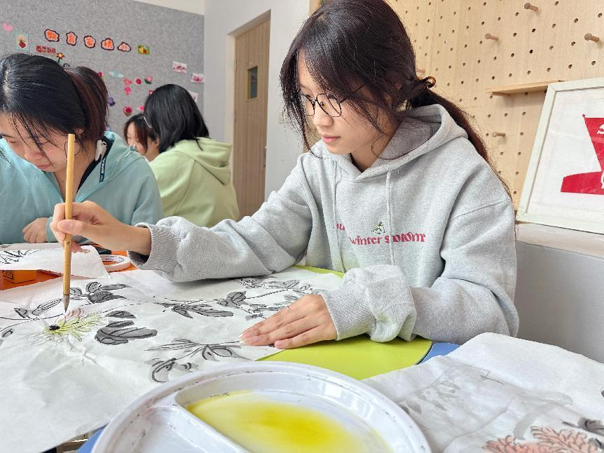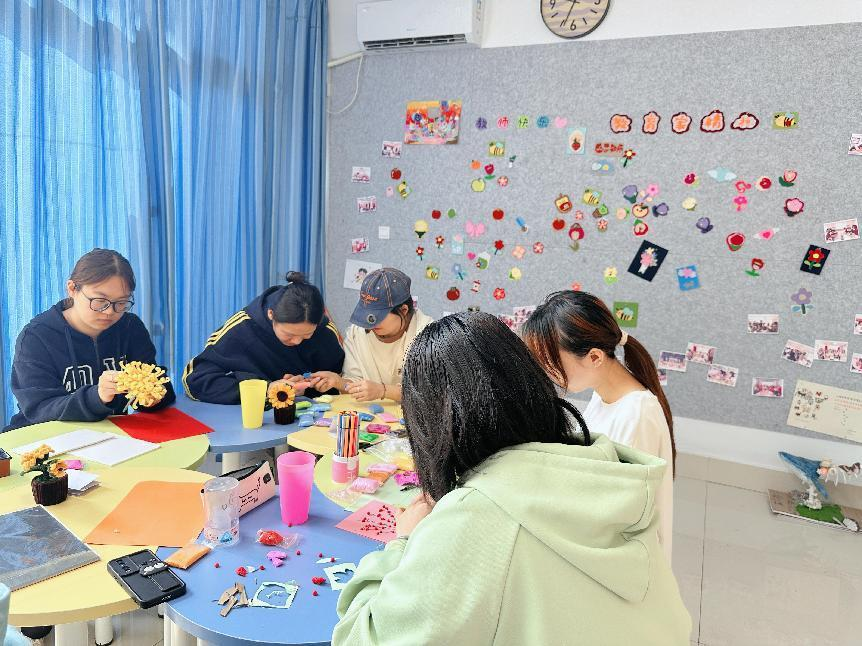 活动中,同学们制作生动形象的茱萸,了解了“遍插茱萸”这一传统习俗的意义。随后,手工卡纸制作菊花的活动让现场充满欢声笑语,大家纷纷展示自己的创意与想象。在画菊花的环节中,同学们领略了中国国画的魅力,专注挥动画笔,创作出充满情谊的作品。最后,大家在信纸上写下对长辈与朋友的寄语,表达对他们的关心与祝福,并将这些信纸投递到一站式员工社区心语信箱中,期待在重阳节当天传递温暖。
