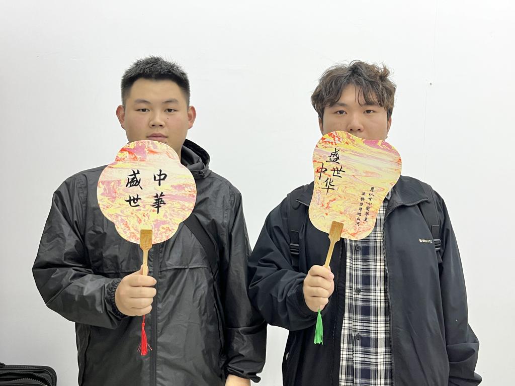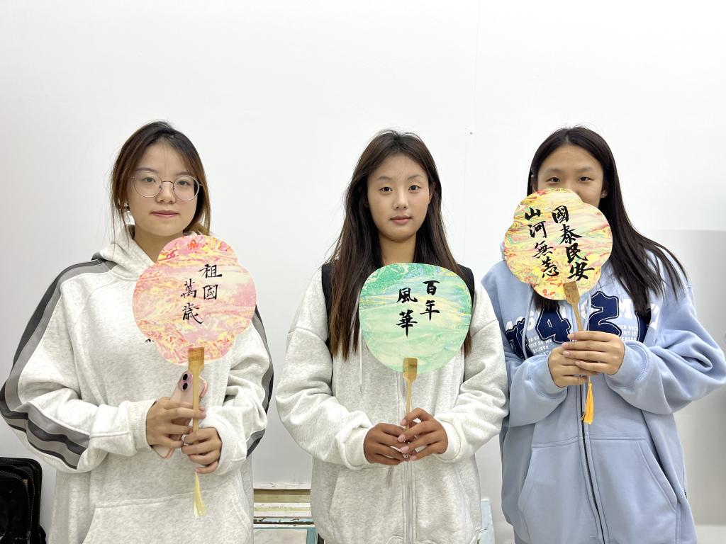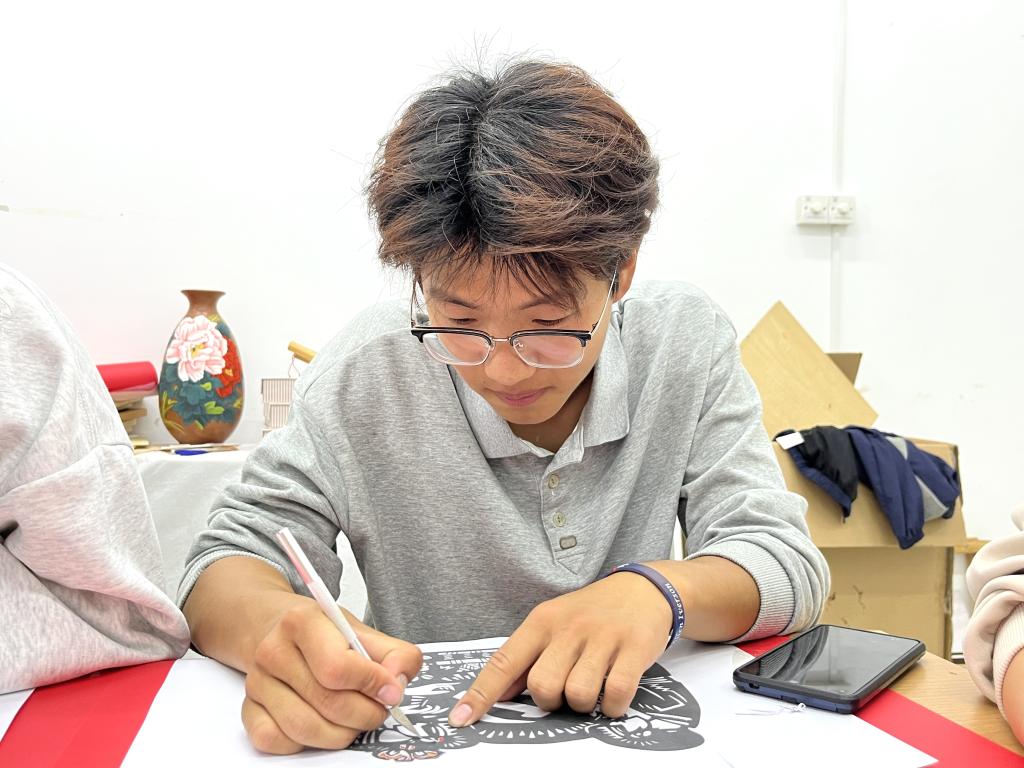 活动现场演示了漆扇制作的步骤,在大地书画协会志愿者的耐心指导下,同学们跃跃欲试,纷纷动手制作漆扇。同学们以漆为墨,以扇为卷,运用“飘漆”技法,以点、甩、弹、划等手法,一把把精美的漆扇逐渐成型,每一把漆扇都承载着他们对祖国深情的告白。此外,还进行了剪纸创作,民间手工艺协会的志愿者们带领同学们以剪代笔,以纸传情,一幅幅生动鲜活的图案跃然纸上,每一张剪纸都展现了对祖国浓厚的爱意。本次活动共制作了40件作品,其中漆扇作品有20件,剪纸作品有20件。