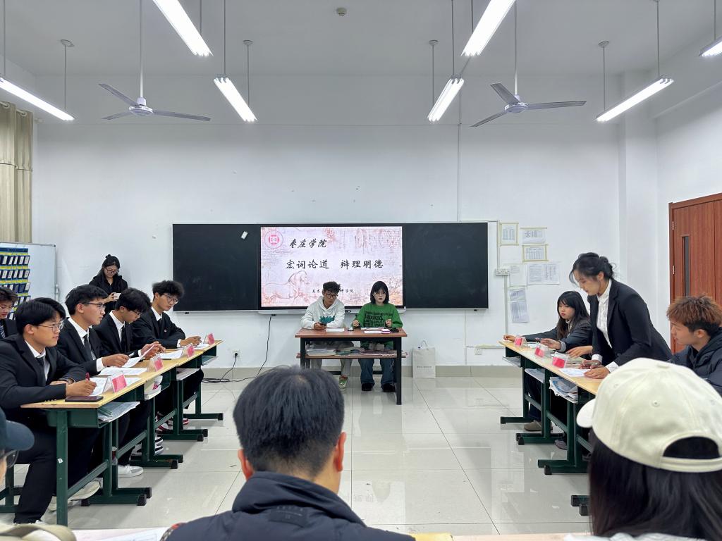 为进一步提高同学们的思辨能力,丰富校园文化生活,11月12日,悟空体育于博雅楼A306开展了“宏词论道 辩理明德”辩论大赛。