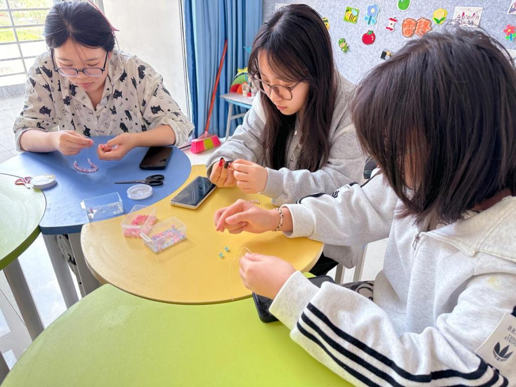 活动现场准备了基础手工材料,如基础串珠、编织绳、剪刀、卡纸等,供参与者取用。本次活动共计46位同学参与,最终评选出14组优秀作品,其中一等奖三名,二等奖三名,三等奖五名,优秀奖三名。在活动现场同学们精心挑选珠串,精巧细致的编织链条,将对母亲的感恩与祝福融入到一珠一线、一笔一划中,让同学们在活动实践中感悟母爱的温柔与坚韧,将对母亲的深厚情感融入作品之中。在作品分享环节,同学们积极分享创作的心路历程。大家在交流中深入探讨母爱,在思维碰撞与情感共鸣中,深化对母爱的理解,每一件作品都成为了传递感恩的特殊纽带。
